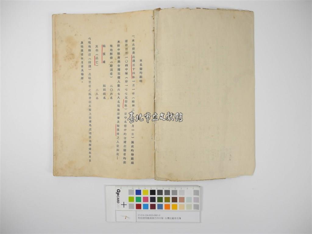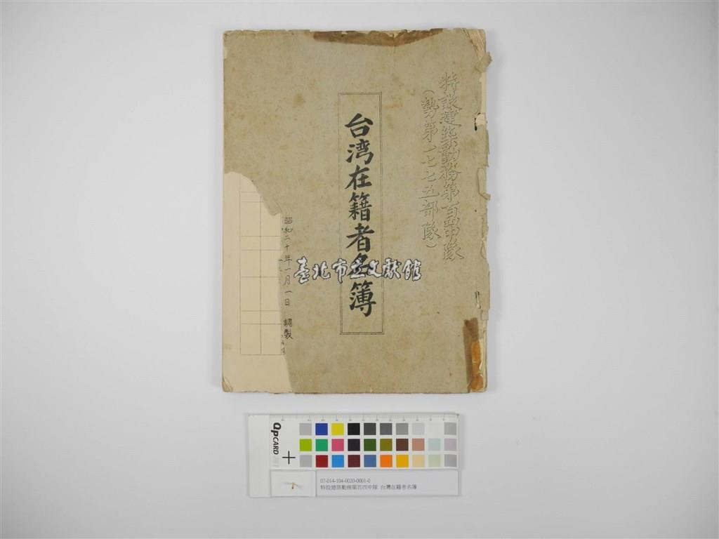 特設建築勤務第百四中隊台灣在籍者名簿(特設建築勤務第百四中隊臺灣在籍者名簿)