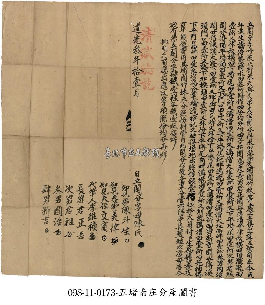 五堵南庄陳氏分產鬮書