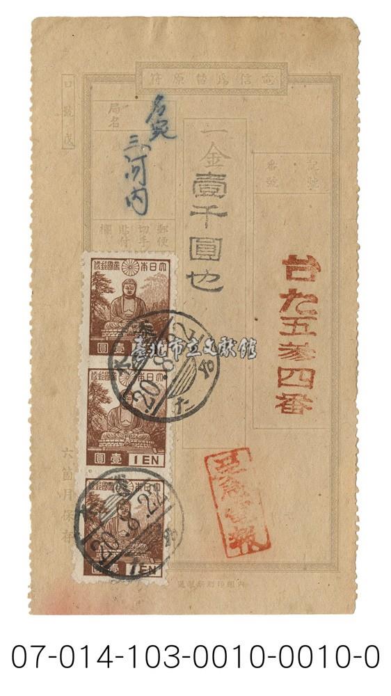 日據時期電報(台た五参四番)