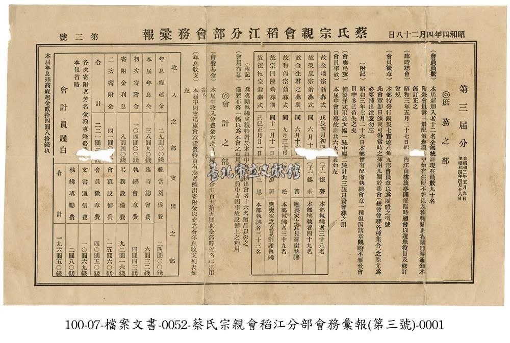 蔡氏宗親會稻江分部會務彙報(第三號)