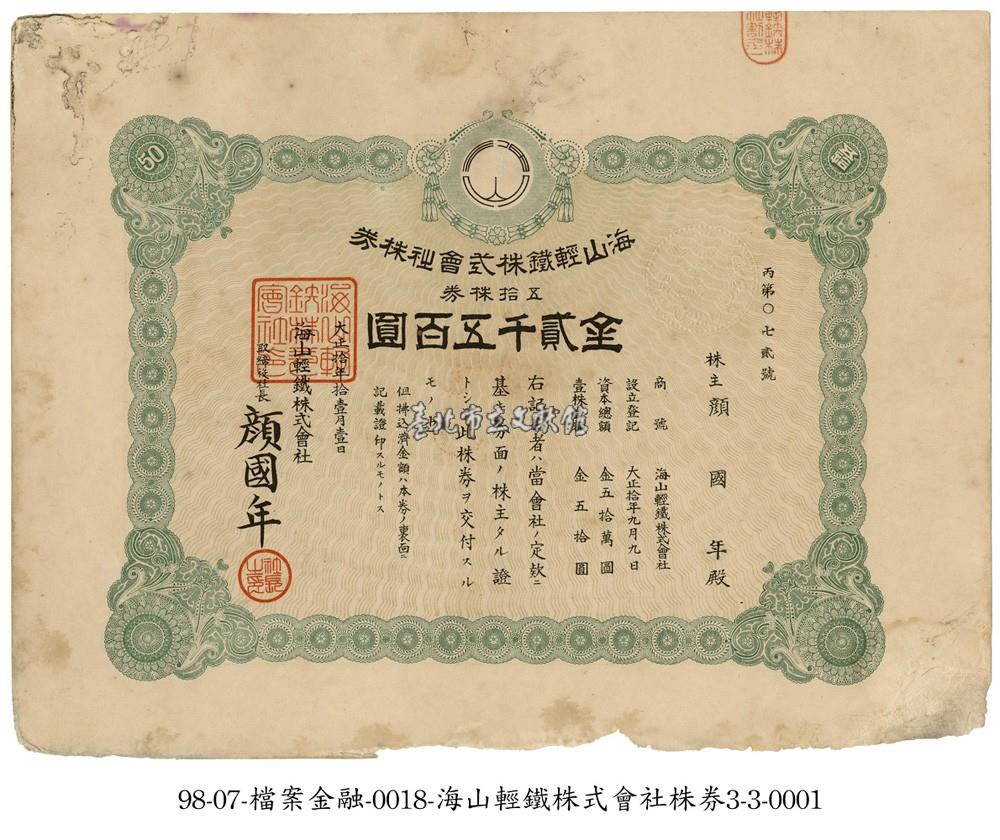 海山輕鐵株式會社株券