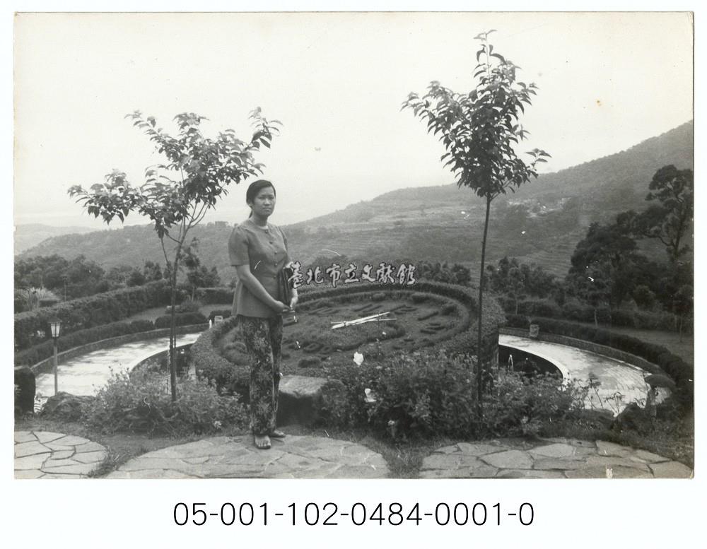 陽明公園花鐘前留影-婦女獨照
