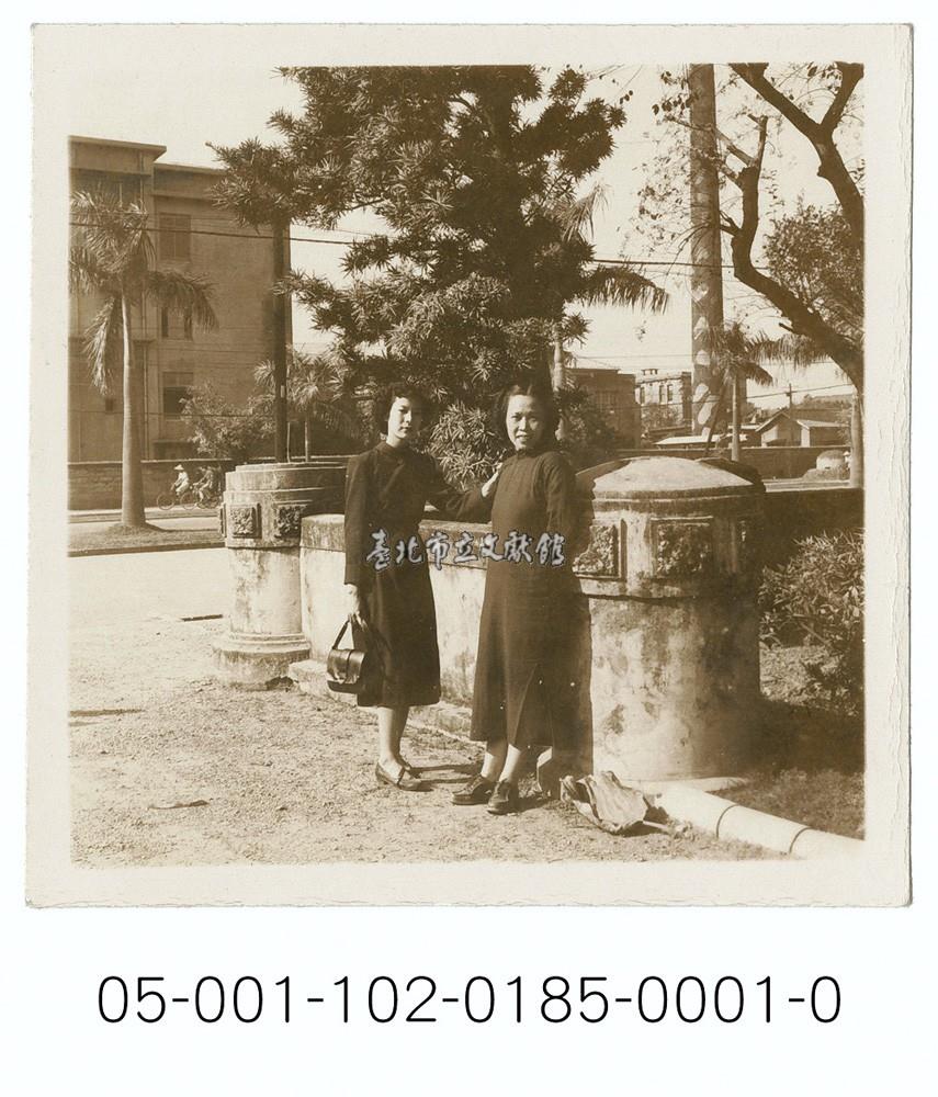 中山南路旁的兩名婦女合影