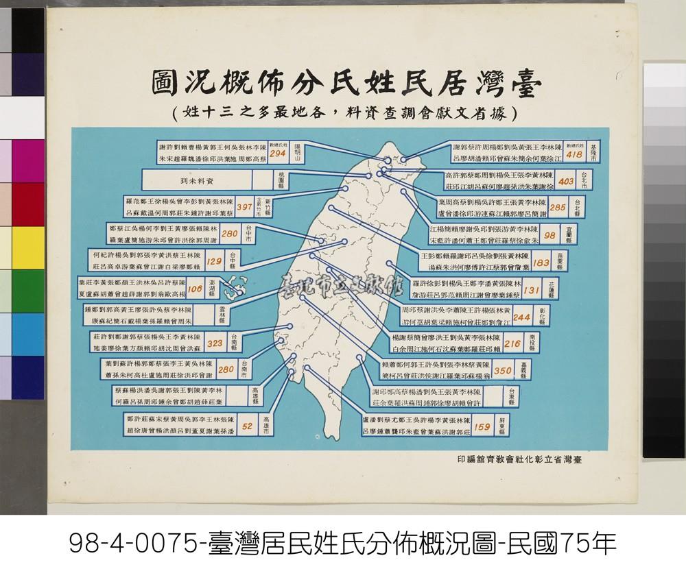 臺灣居民姓氏分佈概況圖