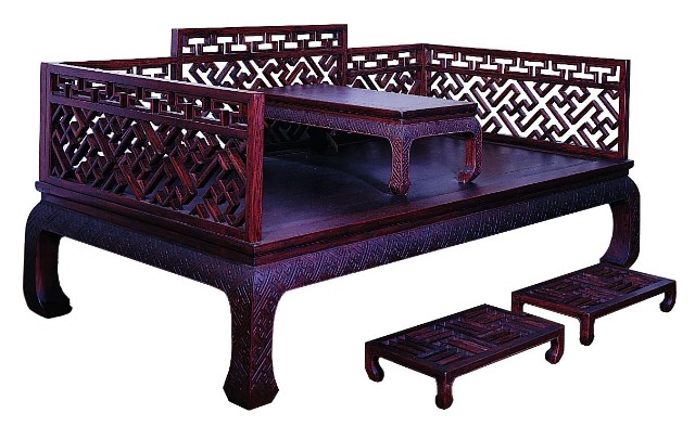 花梨萬字紋羅漢床組-床