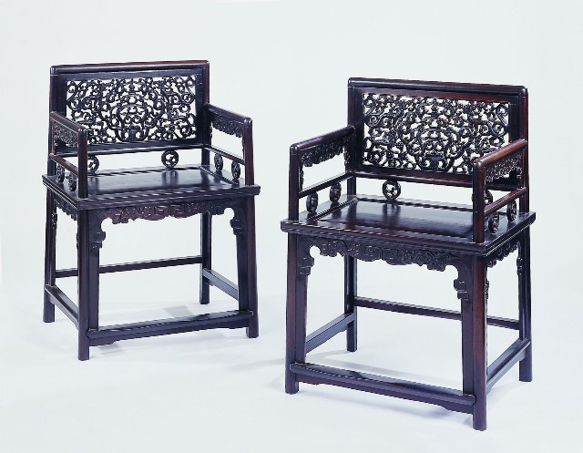 明式紅木透雕靠背玫瑰椅