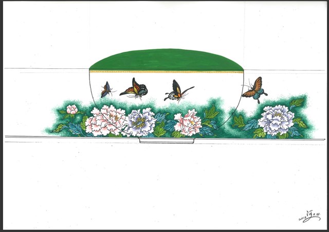 牡丹鳳凰橄欖瓶展開圖稿