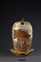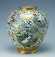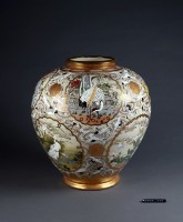 Vase with Satsuma ware decoration of flowers and birds