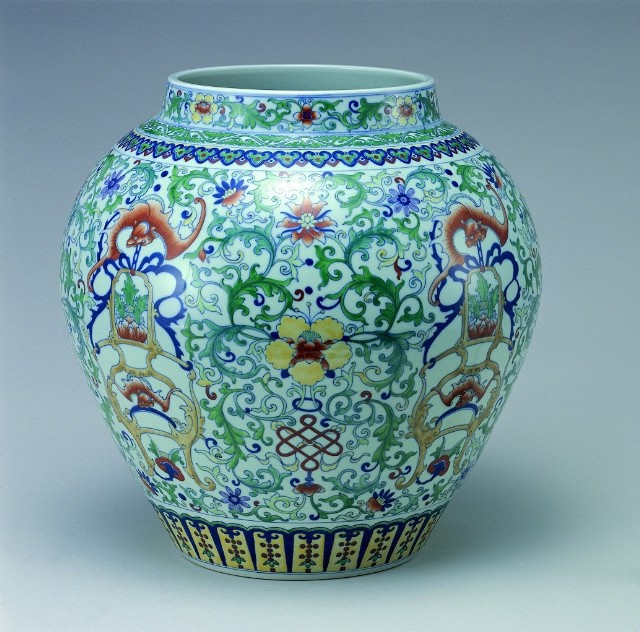 Urn in Doucai with floral scrolls